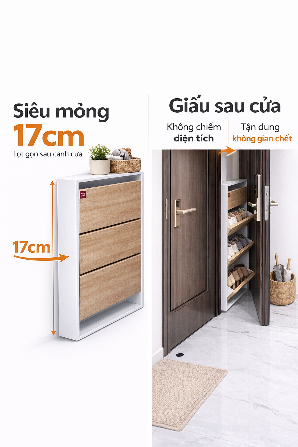 Tủ giày TITI chỉ dày ~17cm, dễ dàng: