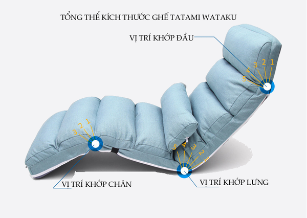 – Ghế bệt tatami wataku với 7 nấc gập thông minh, giúp bạn điều chỉnh kiểu ngồi hoặc nằm cho phù hợp, đặc biệt có thể dũi thẳng ra nằm như 1 chiếc đệm, giúp tạo cảm giác êm ái và thư giãn khi ngồi lướt web, xem phim, đọc sách…đặc biệt tạo cảm giác vô cùng thoải mái cho mẹ bầu.